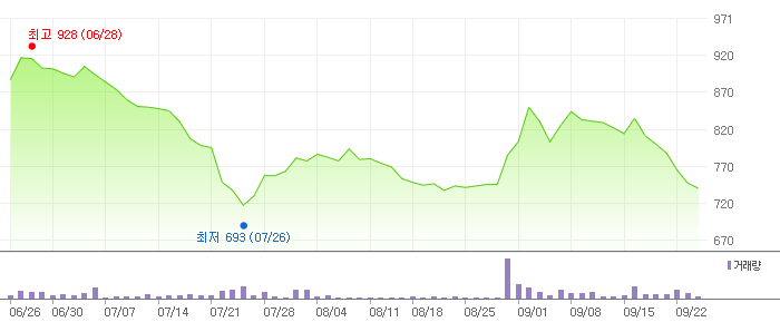 지난 52주간 최고 주가는 1,205원이었고, 52주간 최저 주가는 650원이었습니다.
