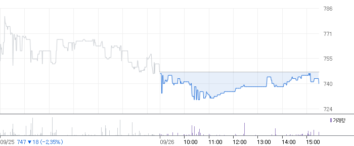 <이스타코 2023.09.26 기준(장마감) 기준 당일 주식 차트>
