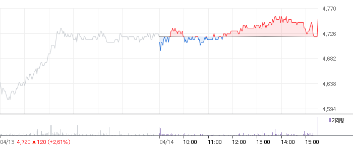 <SK네트웍스 2022.04.14 기준(장마감) 기준 당일 주식 차트>