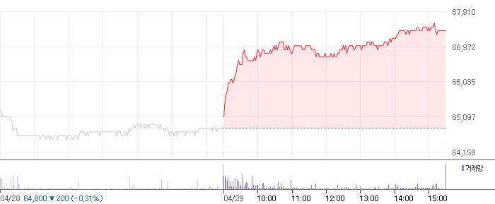 <삼성전자 2022.04.29 기준(장마감) 기준 당일 주식 차트>