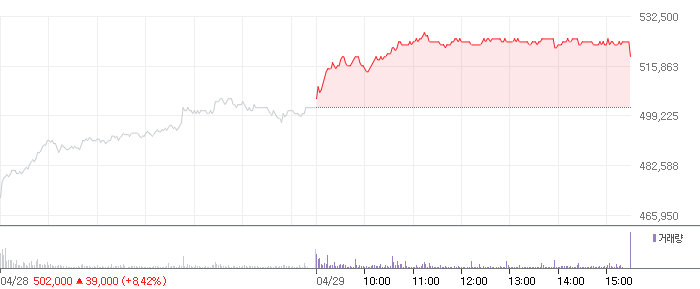 <LG화학 2022.04.29 기준(장마감) 기준 당일 주식 차트>