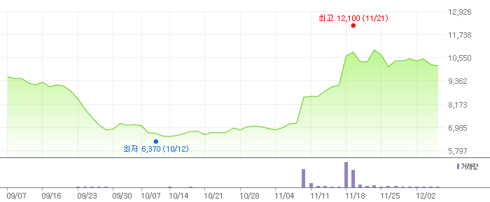 아래는 크린앤사이언스의 일간, 3개월 주식 변동 차트입니다.