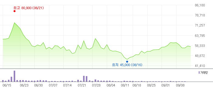 아래는 유테크의 일간, 3개월 주식 변동 차트입니다.
