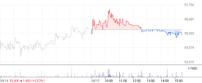 <유테크 2023.09.15 기준(장마감) 기준 당일 주식 차트>