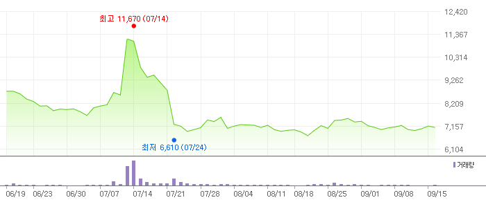 아래는 비에이치아이의 일간, 3개월 주식 변동 차트입니다.