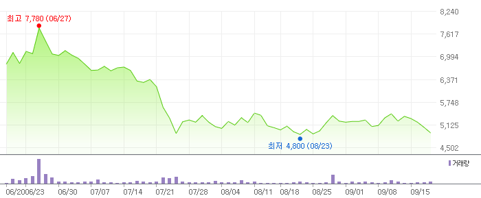 <키네마스터 3개월 주식 차트>
