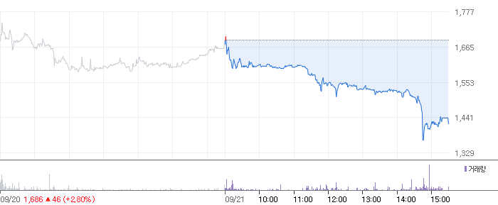 <THE MIDONG 2023.09.21 기준(장마감) 기준 당일 주식 차트>